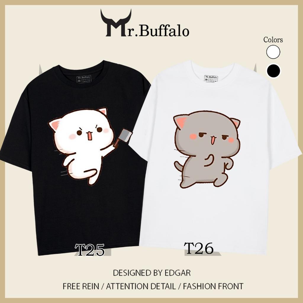 ✨Áo đôi , áo thun cặp nam nữ tay lỡ Unisex mèo mochi dượt nhau form rộng vải cotton 100% T25T26 - Mr.Buffalo