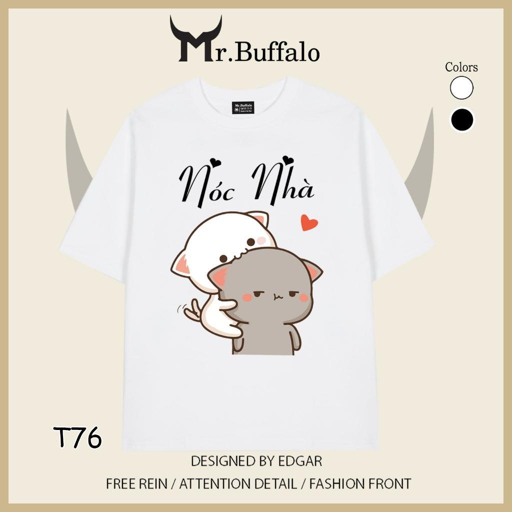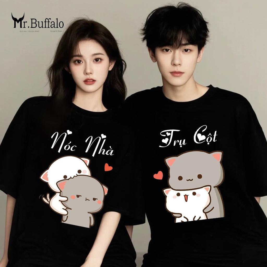 ✨Áo đôi, cặp tay lỡ unisex Mèo mochi nóc nhà, cột nhà dễ thương Mr.Buffalo