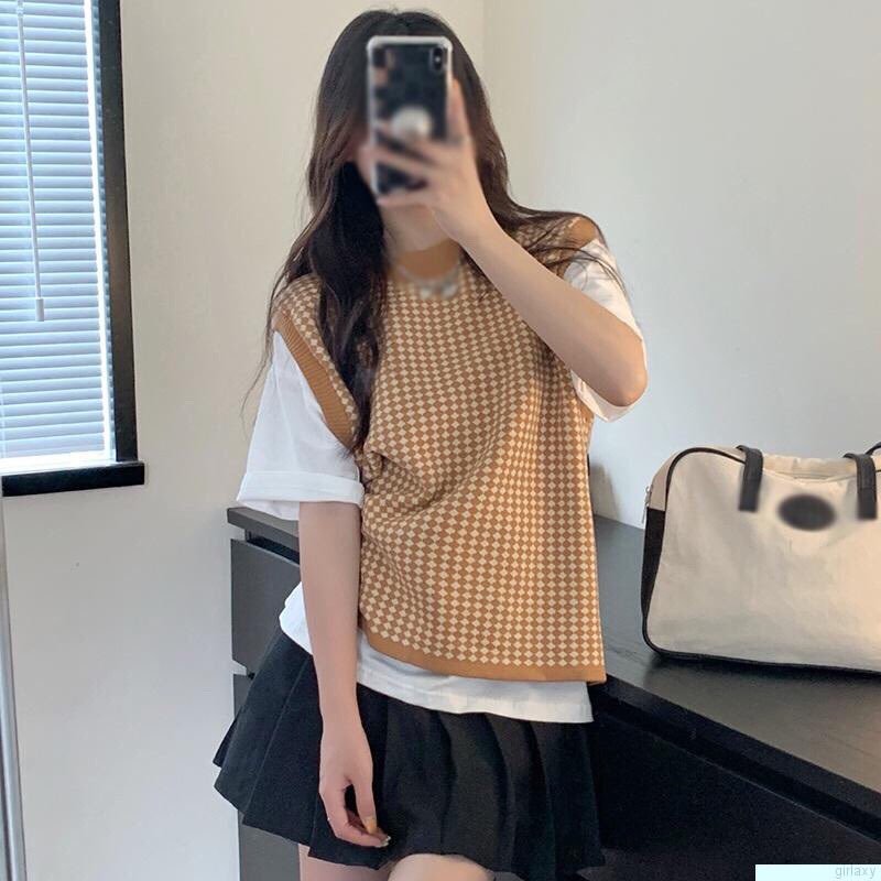 Áo Ghi Lê Dệt Kim 4 Màu Thiết Kế Không Tay Cổ Chữ V Phong Cách Retro Hàn Quốc Thời Trang Nữ #short