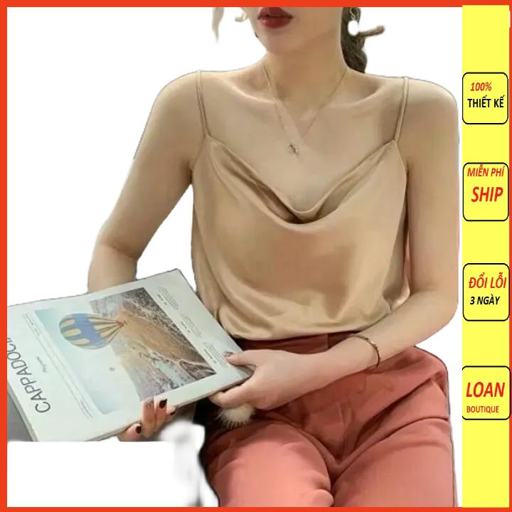 Áo Hai Dây Lụa Cổ Đổ Sang Chảnh Cao Cấp Mát Mẻ Đường May Đẹp
