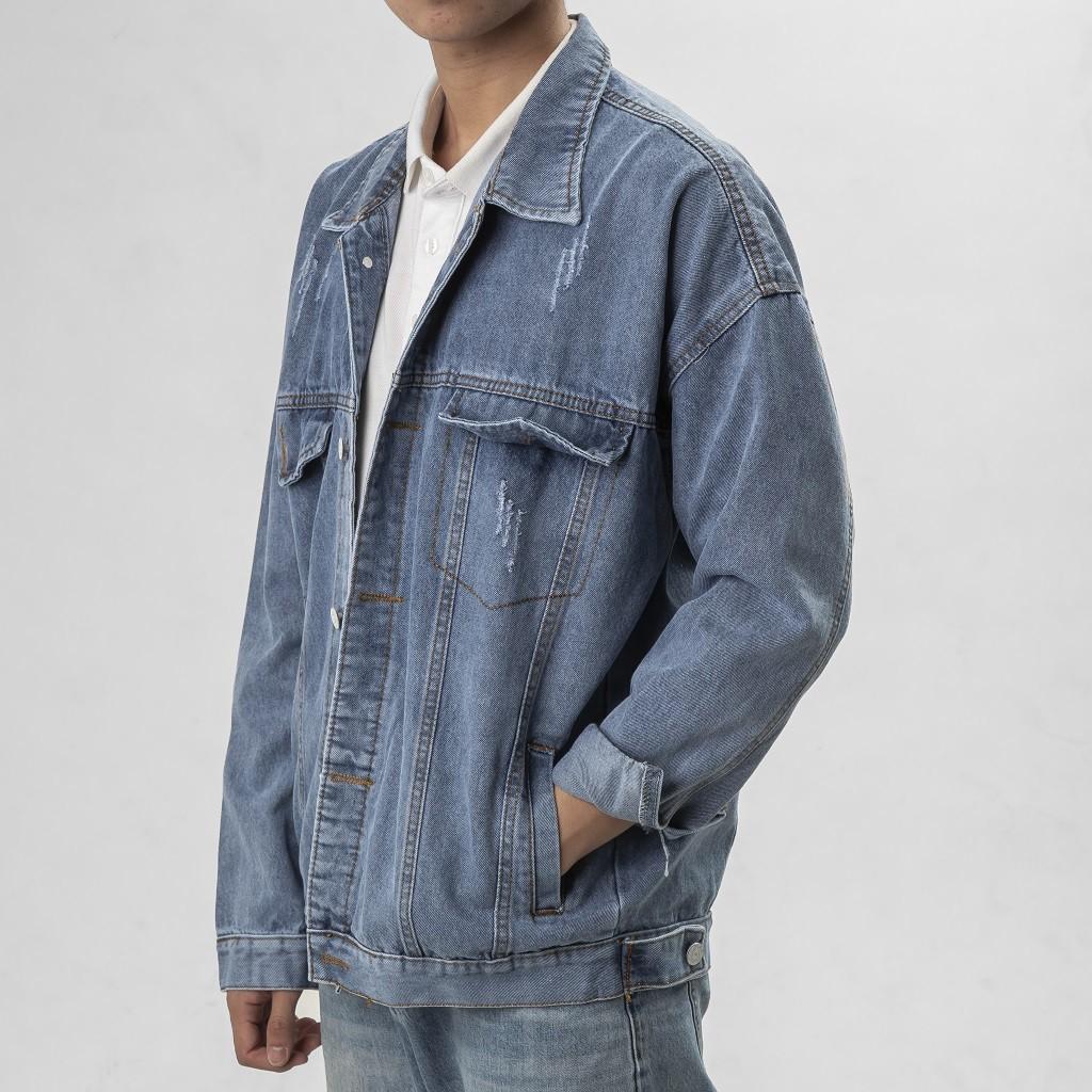 Thông tin chi tiết của sản phẩm áo khoác jean nam màu xanh cơ bản cào xước - Xuất xứ: Việt Nam - Chất liệu : Jean dệt cực chuẩn, không nhăn, có độ bền