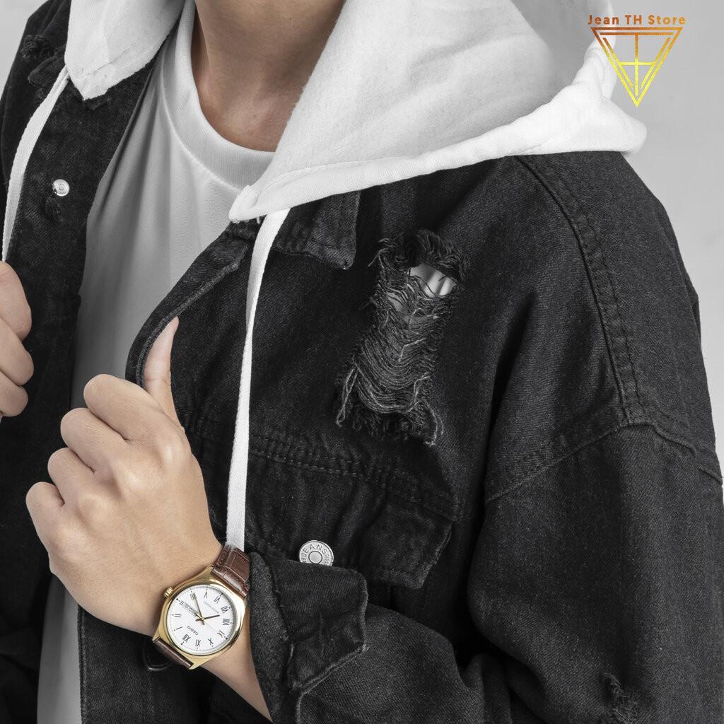 Áo khoác Jean nam tua rua trắng . Thiết kế cực phong cách, tinh nghịch Kết hợp chiếc áo khoác này với đôi giày thể thao nam và mắt kính thời trang Thiết kế khéo léo,