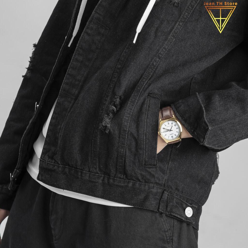 Áo khoác jeans nam màu đen KM901262 Áo khoác jeans nam cao cấp với chất liệu vải jeans cotton mang lại cảm giác thoải mái khi mặc Áo khoác có thể mặc được trong tất