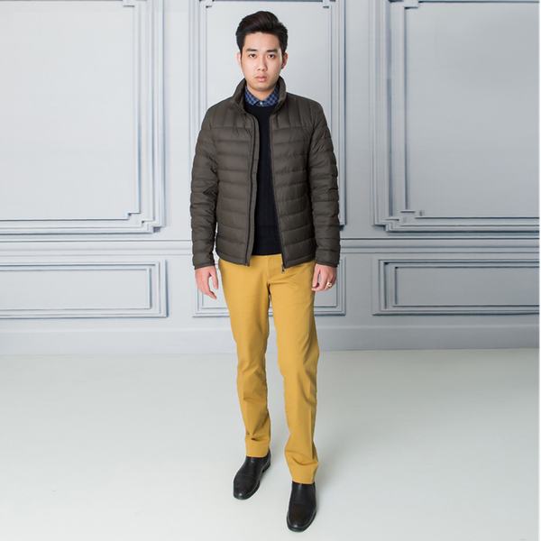 Mặc thử áo lông vũ nam đại hàn Uniqlo màu xanh rêu 57 OLIVE 442147 SEAMLESS DOWN PARKA 3D CUT