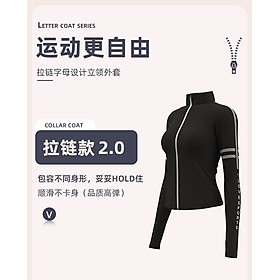 Áo Khoác Thể Thao Tập Gym Tập Yoga Nữ Dài Tay Phối Khóa Kéo Co Giãn Thấm Hút Mồ Hôi