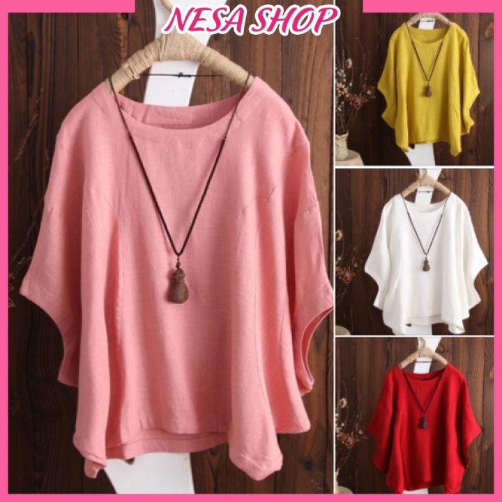 1. Tên sản phẩm: Áo kiểu nữ đẹp, áo kiểu form rộng cánh dơi che khuyết điểm, chất liệu đũi mềm mát NeSa Shop.