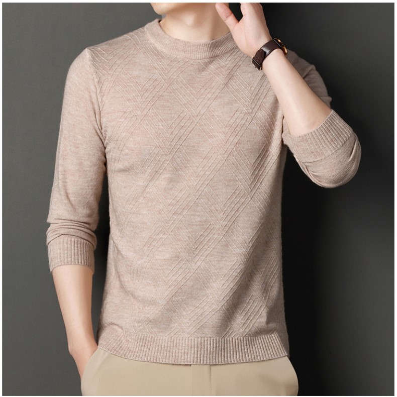 áo len nam cổ tròn, họa tiết kẻ Hàn Quốc, len dệt kim dày dặn ưởng mềm mịn, dày dặn, giữ ấm tốt,