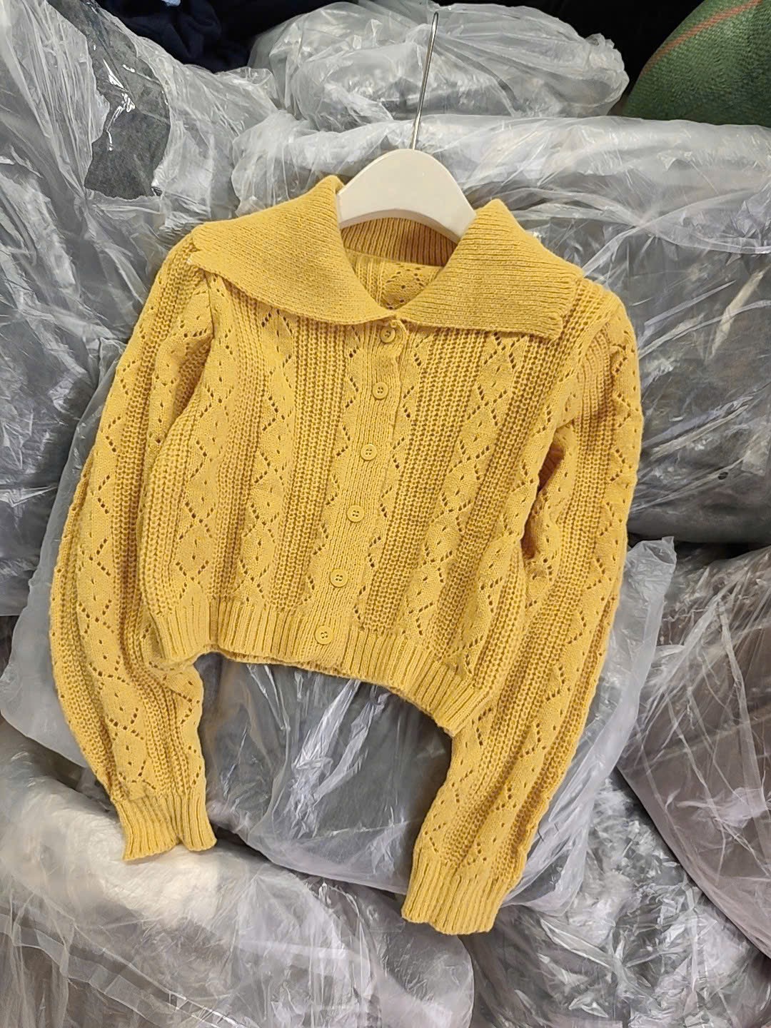 Mua tại Tiktok Thiết kế cổ sóng xinh xắn, tạo điểm nhấn nữ tính và trẻ trung. Màu vàng tươi tắn, giúp tôn da – nổi bật – dễ phối đồ. Chất len mềm mịn, co giãn