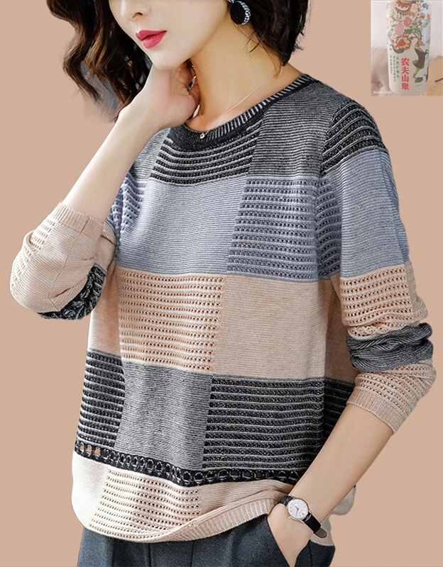 Áo len cổ bẻ sọc ngang phối màu đậm nhạt