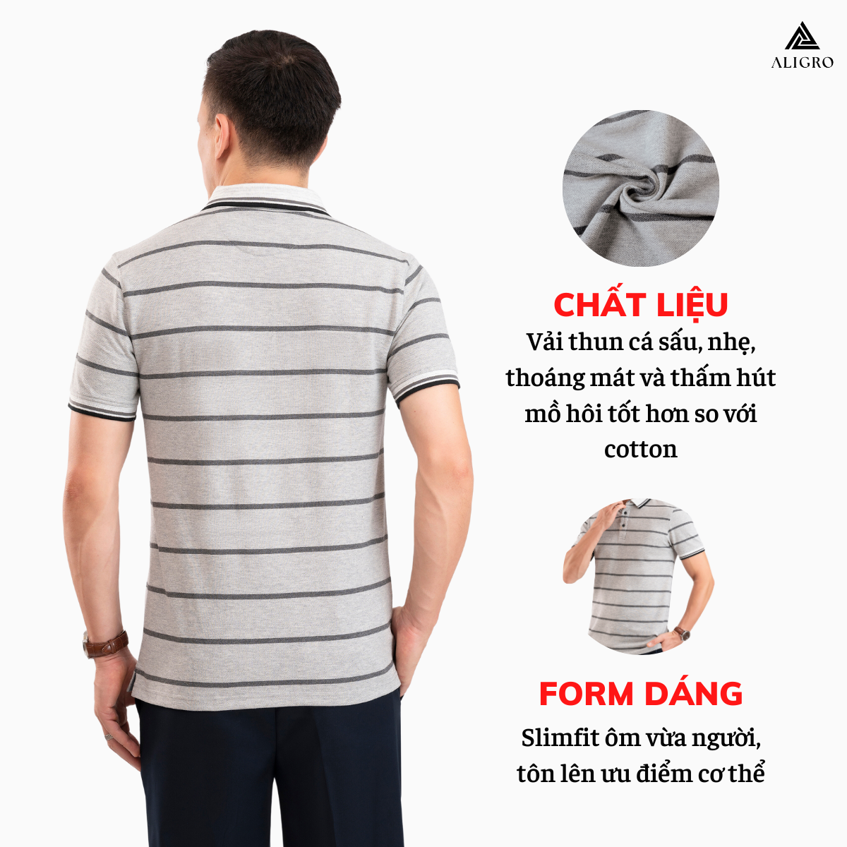 ✨Áo Polo nam ngắn tay kẻ ngang màu ghi ALGPLO84