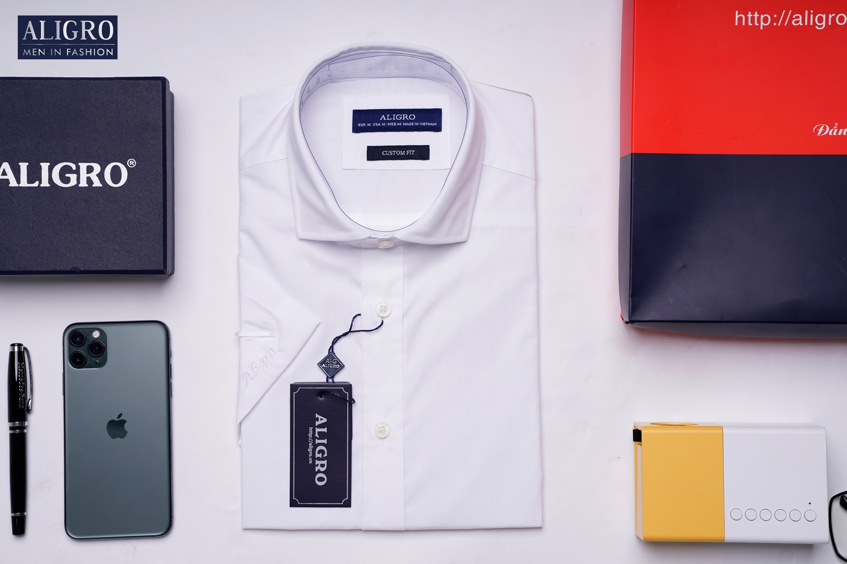 ÁO SƠ MI NAM CỘC TAY TRẮNG ALIGRO ALGSC95
