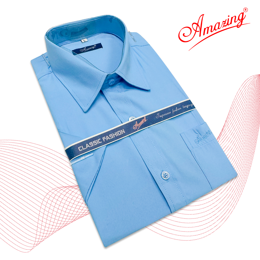 ÁO SƠ MI NAM TRẮNG TAY NGẮN AMAZING, ĐỒNG PHỤC HỌC SINH CÁC CẤP, SIZE TỪ 20-95KG, FORM SUÔNG, VẠT BẦU (Thương hiệu thời trang Amazing trực thuộc bản quyền của công ty TNHH thời