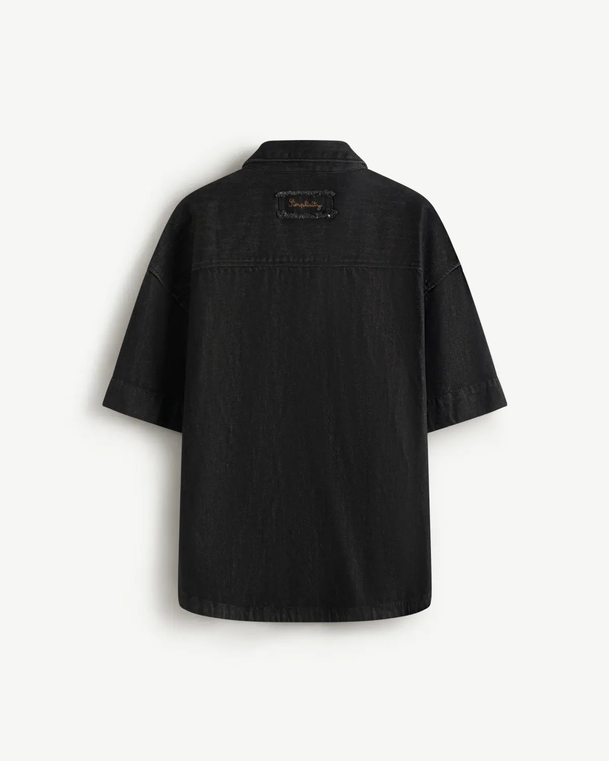 ✨Áo sơ mi denim nam nhãn trang trí loose - RT 10S25DSH003 | ROUTINE CÀ MAU