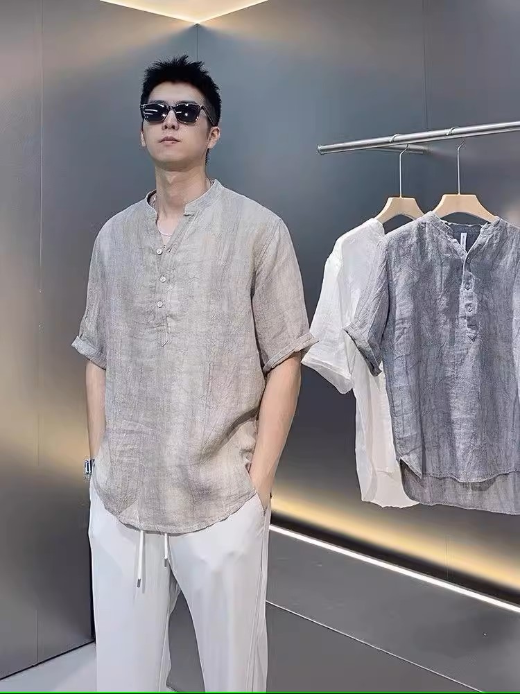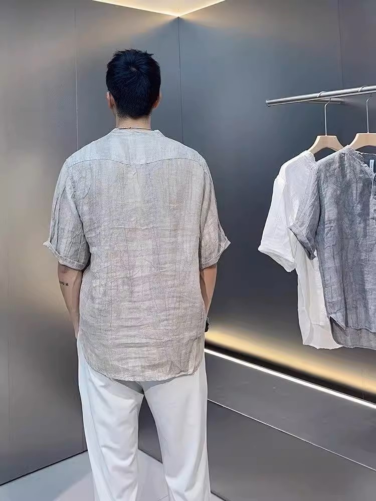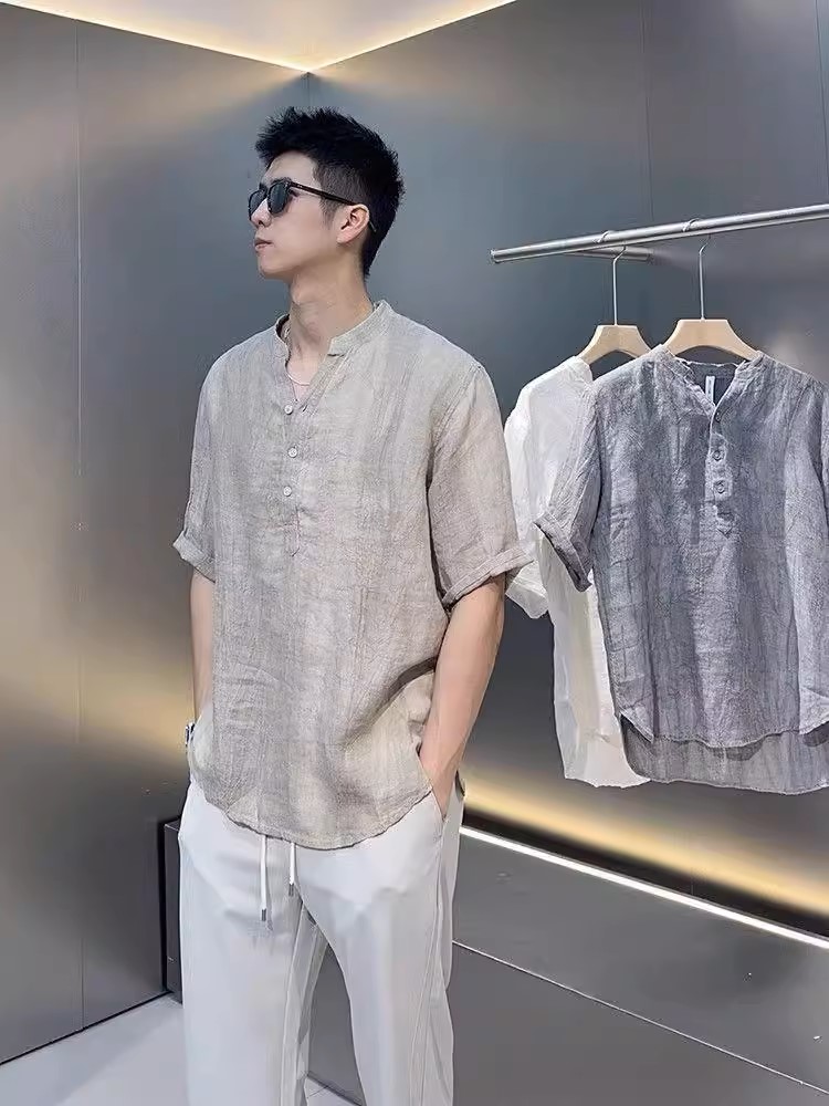 ✨Áo sơ mi đũi trơn ngắn tay nam phối cúc đơn giản tinh tế, thanh lịch