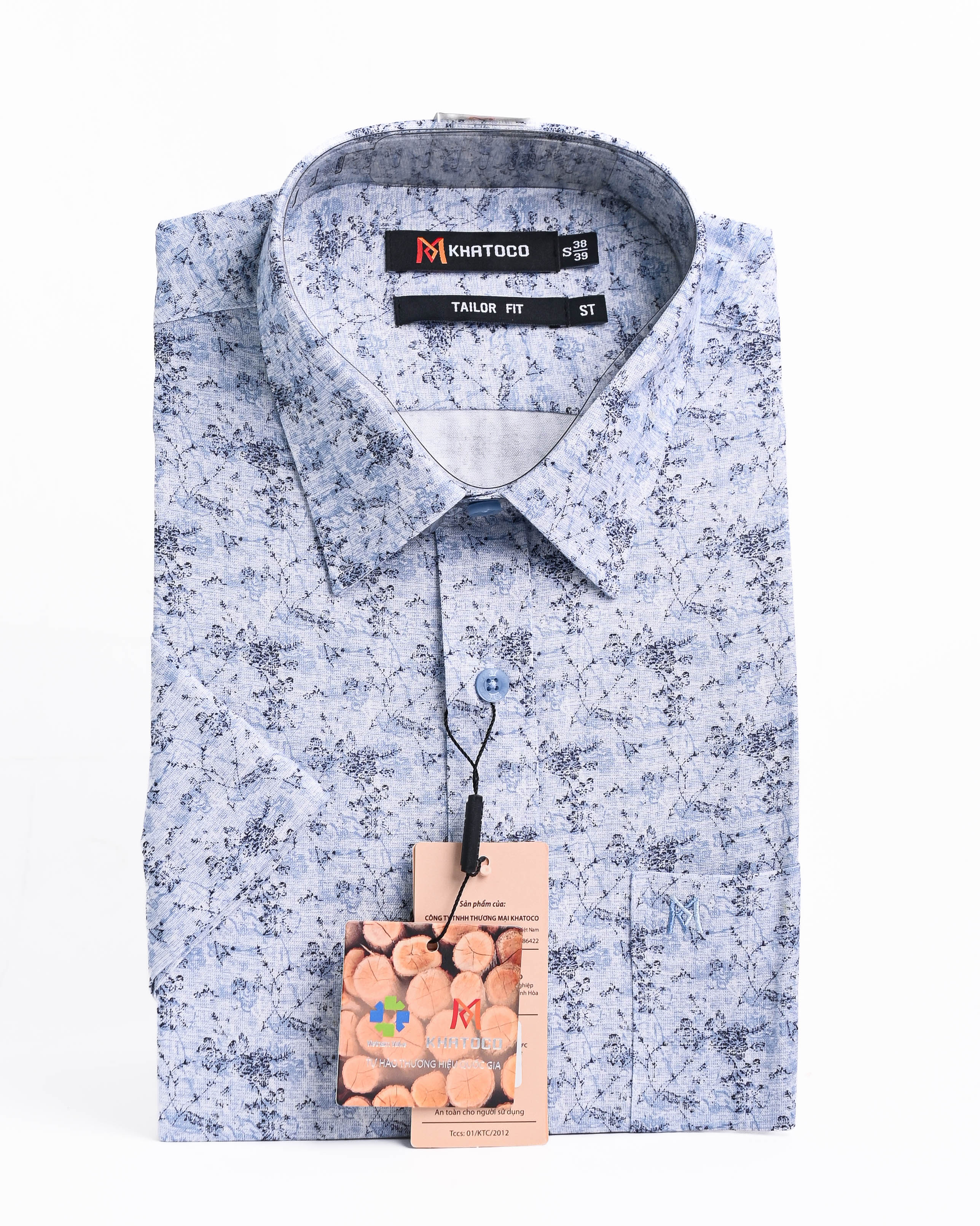 Áo sơ mi nam tay ngắn lai ngang – Khatoco - Mã hàng: A1MN538T2 - Chất liệu: 75% Polyester + 22% Viscose (Bamboo) + 3% Spandex → Vải mềm mại, thoáng mát, co giãn nhẹ,