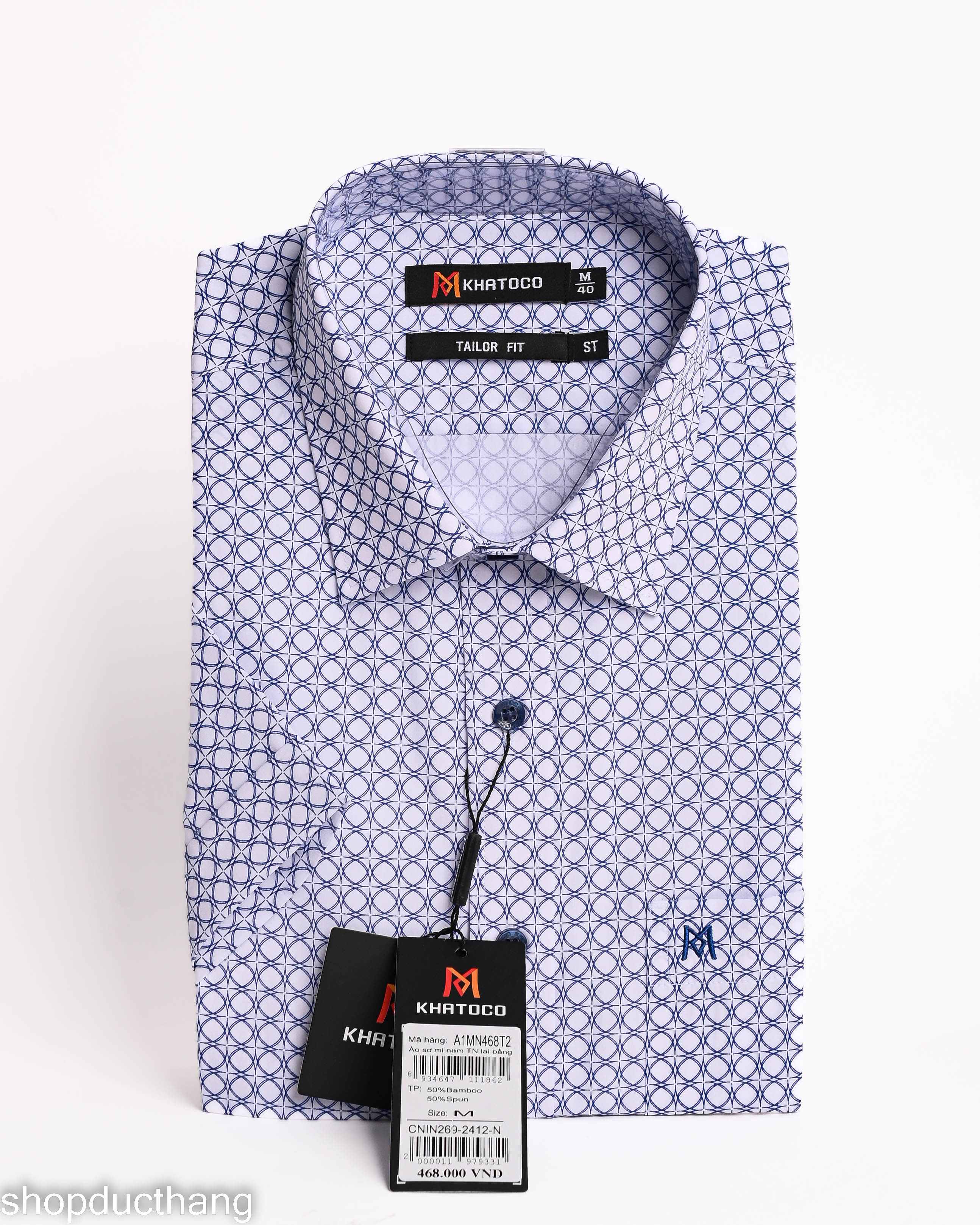 (V) Mô tả sản phẩm: Áo Sơ Mi Nam Khatoco Tay Ngắn – Họa Tiết Trừu Tượng, Form Tailor Fit Lịch lãm, thời thượng và đầy cá tính – mẫu áo sơ mi tay ngắn Khatoco là lựa chọn lý tưởng cho quý ông hiện đại. Thiết kế họa tiết trừu tượng ấn tượng trên nền vải trắng ngà, tạo điểm nhấn nổi bật nhưng vẫn giữ sự tinh tế. - Chất liệu: Polyester - Spandex - Viscose: mềm mại, thoáng mát, co giãn nhẹ, giữ form tốt và dễ ủi. - Kiểu dáng: Tailor Fit – ôm nhẹ cơ thể, giúp tôn dáng mà vẫn thoải mái vận động. - Thiết kế: - Cổ áo đứng chuẩn dáng, thanh lịch - Họa tiết trừu tượng độc đáo, hiện đại - Logo thêu tinh tế trên túi ngực - Nút áo tông xuyệt tông, được may chắc chắn - Màu sắc: Trắng ngà phối họa tiết nâu nhạt - Size: M (40), L (41), XL (42), 2XL (43)