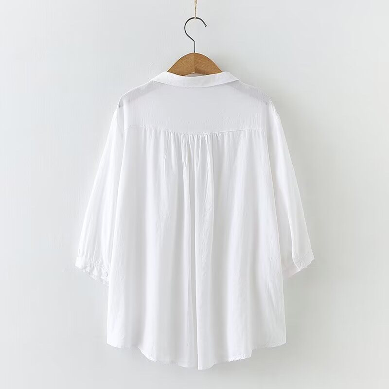- Tên sản phẩm: Áo sơ mi kiểu tay lỡ cổ đức, áo kiểu nữ dễ thương, chất liệu Đũi tơ mềm mát, thấm hút mồ hôi.