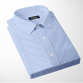 Áo Sơ Mi Nam Công Sở Trung Niên Thương Hiệu Anton Dài Tay Vải Sợi Tre Xanh Dương Kẻ Caro Chìm AT203