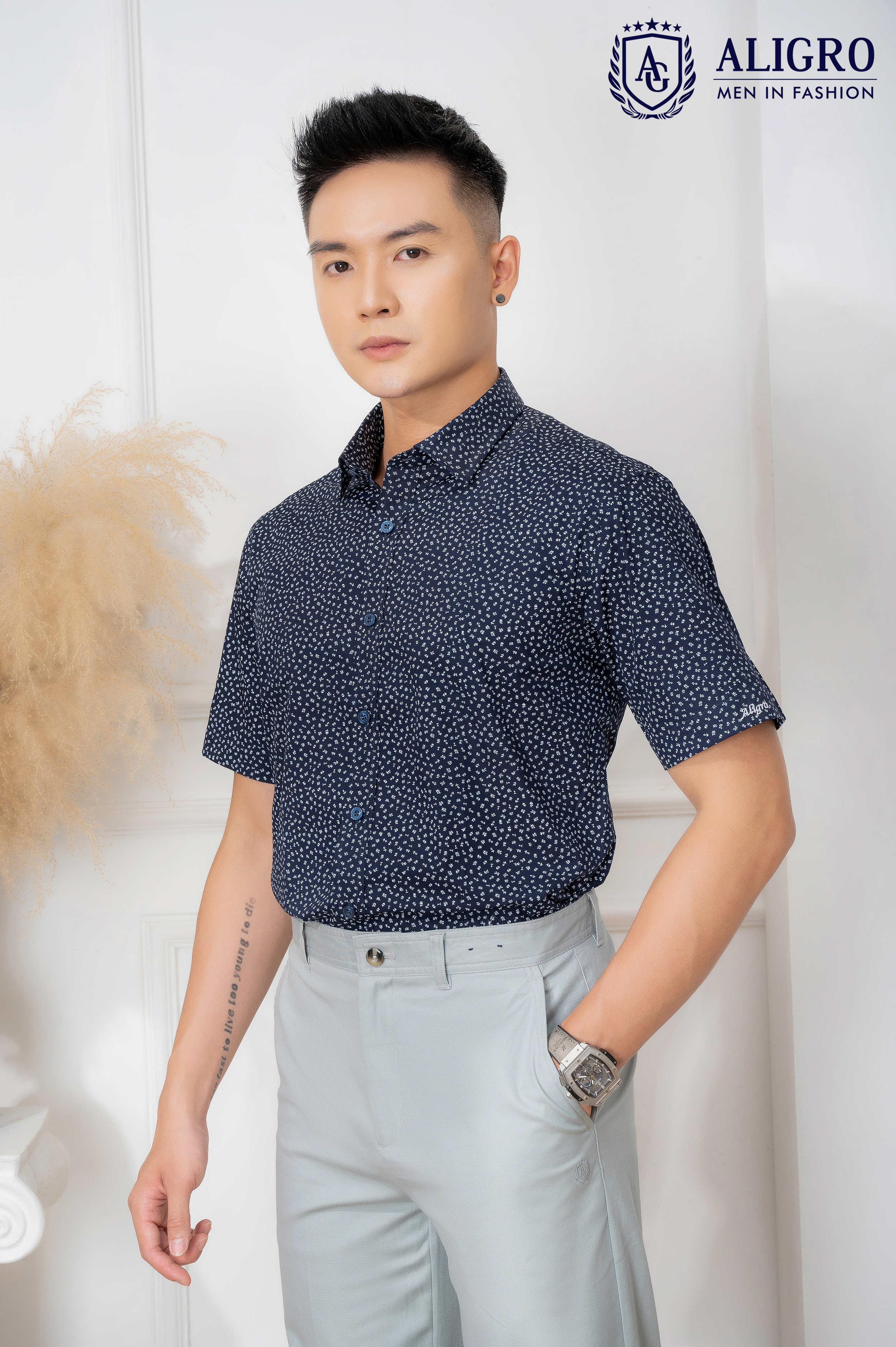 ÁO SƠ MI NAM CỘC TAY XANH HỌA TIẾT HOA NHỎ ALIGRO ALGSC88