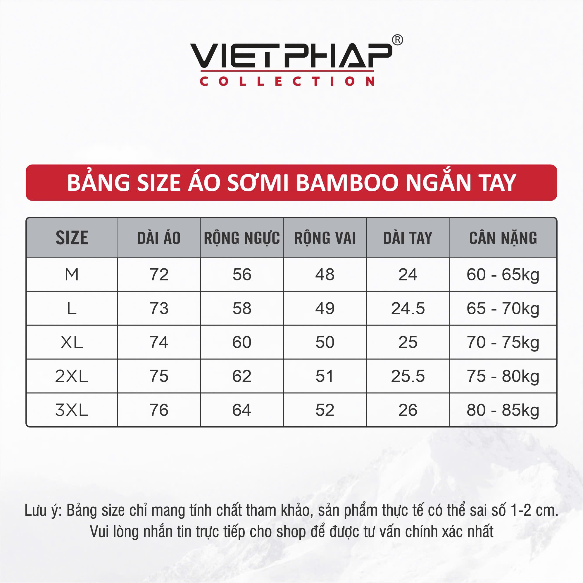 Áo Sơ Mi VIỆT PHÁP cao cấp mềm mại thoáng khí - Chất liệu: Sợi Bamboo thân thiện với người mặc với những tính năng ưu việt - Size: M - L - XL -