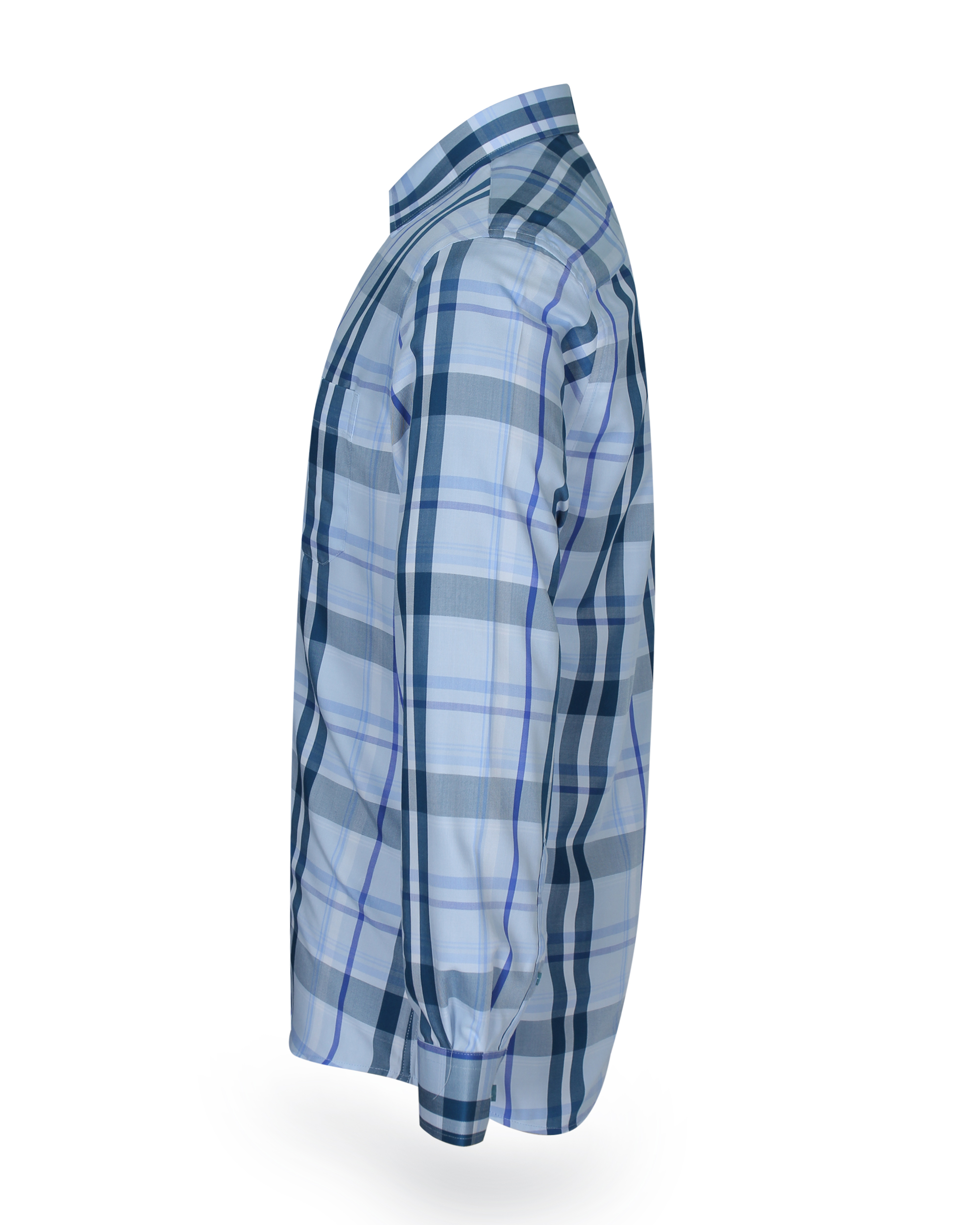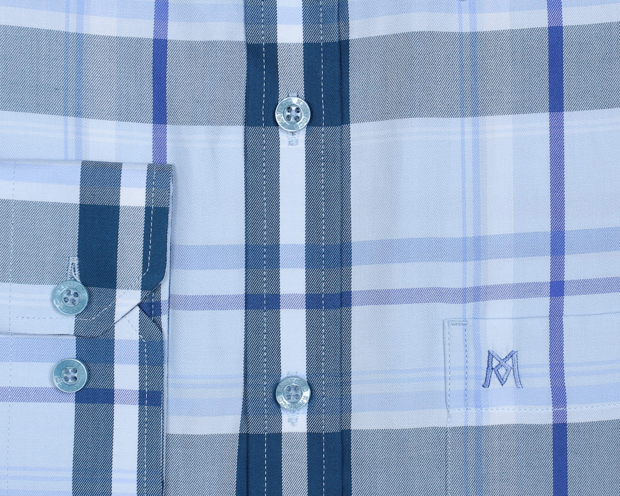 (V) MÔ TẢ: Form Taylor, tai dài Form áo tiêu chuẩn với form áo rộng vừa phải, không ôm sát cơ thể, bó nhẹ ở vùng eo và tay áo. Độ rộng vùng ngực và nách cũng sẽ fit hơn với cơ thể. Không quá rộng như form áo cổ điển. Màu vải nhã nhặn và trung tính dễ dàng phối trang phục tạo sự lịch lãm, nam tính Nút ton-sur-ton khắc logo đẹp mắt phối trọn vẹn màu áo. Logo thêu sắc nét trên túi áo. Chất liệu:50%POLYESTER- 24%COTTON-2%SPANDEX- 24%VISCOSE(BAMBOO) |Mềm mịn|Thấm hút |Kháng khuẩn|Độ thoáng khí cao|Chống tia UV|Chống nhăn|Chống co rút |Nhanh khô|Dễ vệ sinh làm sạch|Đứng phom áo Màu sắc : Màu Xanh họa tiết