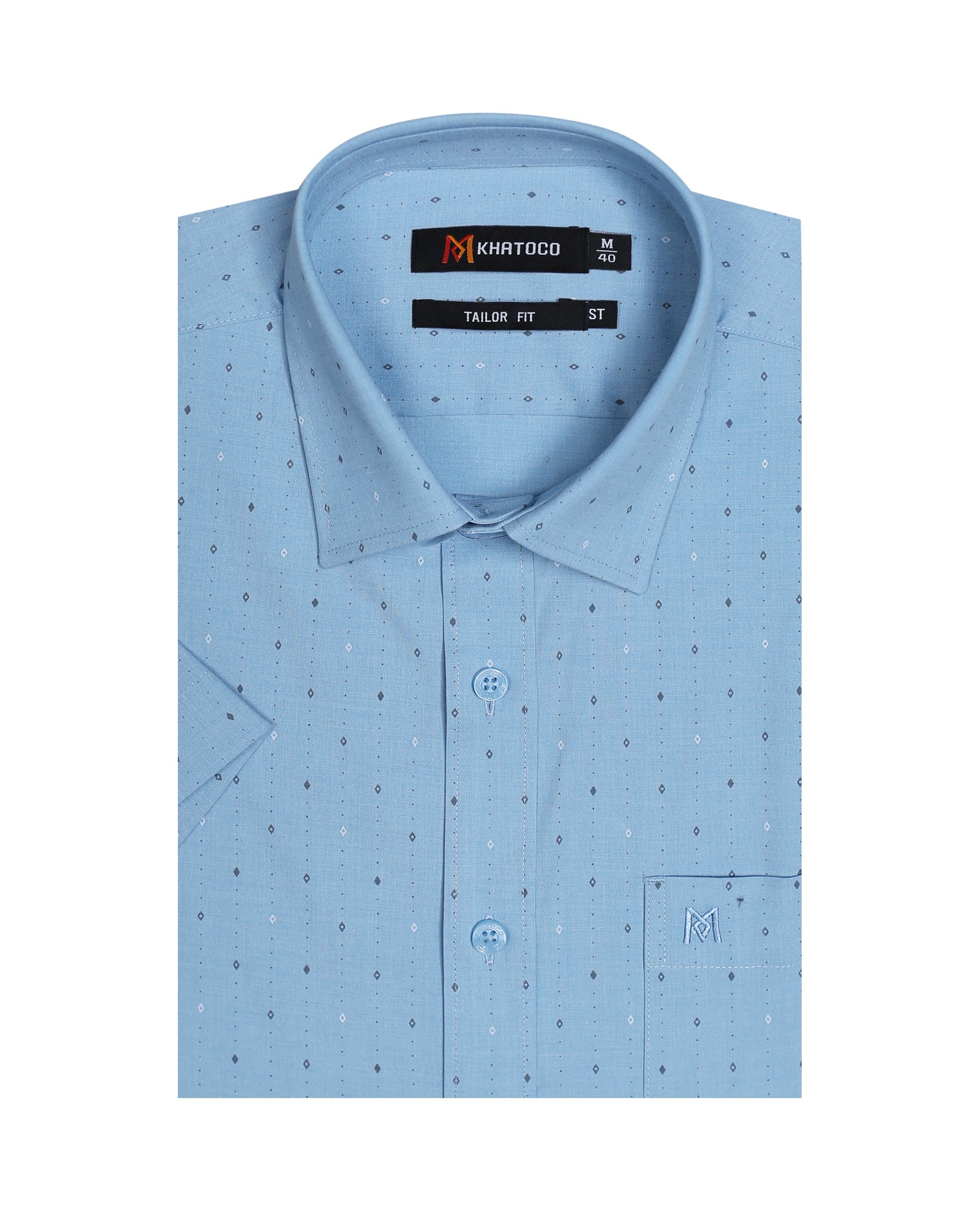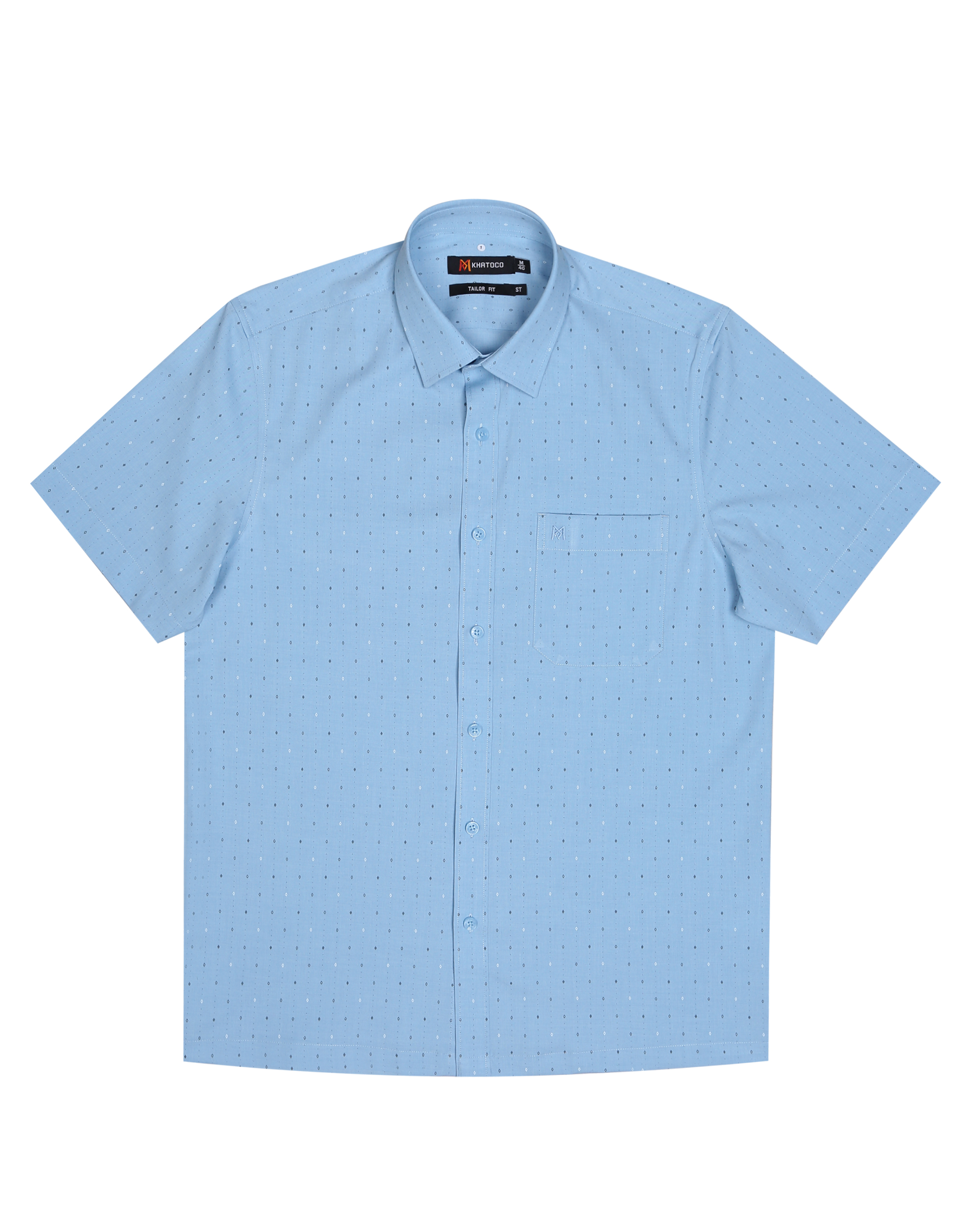 Áo sơ mi nam tay ngắn lai ngang – Khatoco - Mã hàng: A1MN538T2 - Chất liệu: 75% Polyester + 22% Viscose (Bamboo) + 3% Spandex → Vải mềm mại, thoáng mát, co giãn nhẹ,