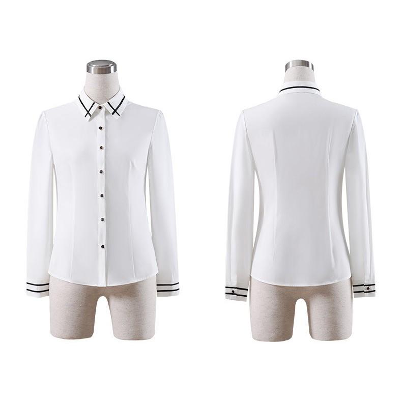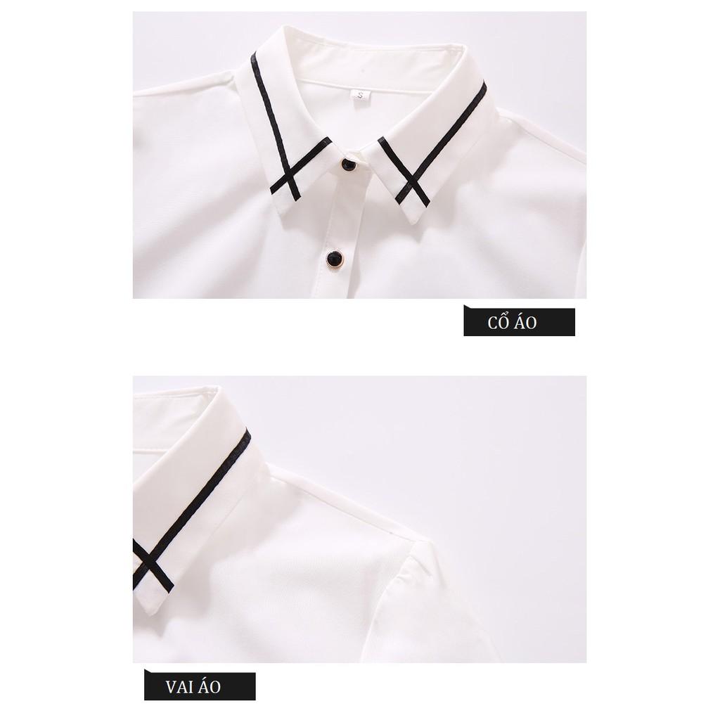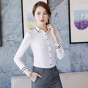 ✨Áo sơ mi nữ công sở màu trắng phối viền công sở văn phòng dài tay thanh lịch