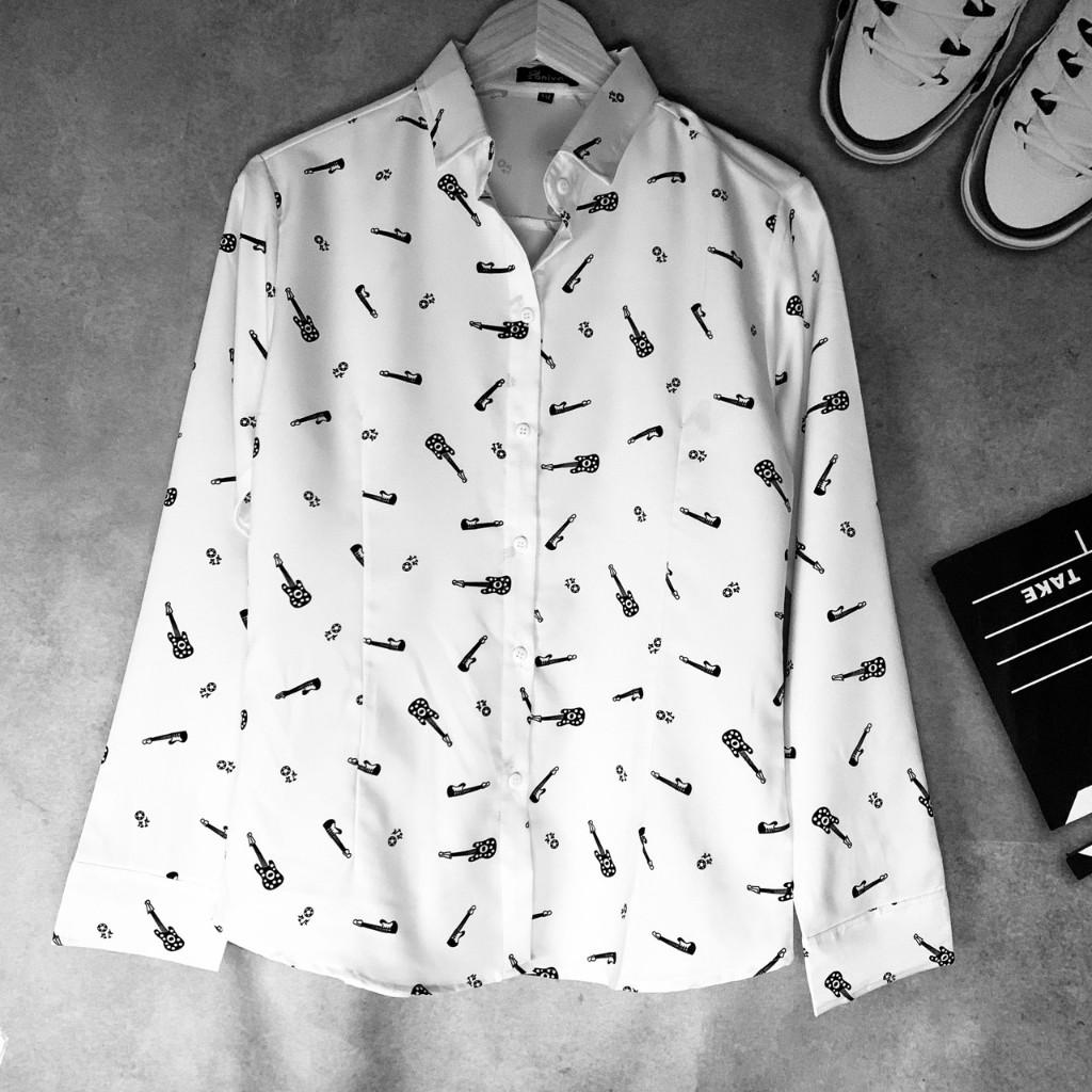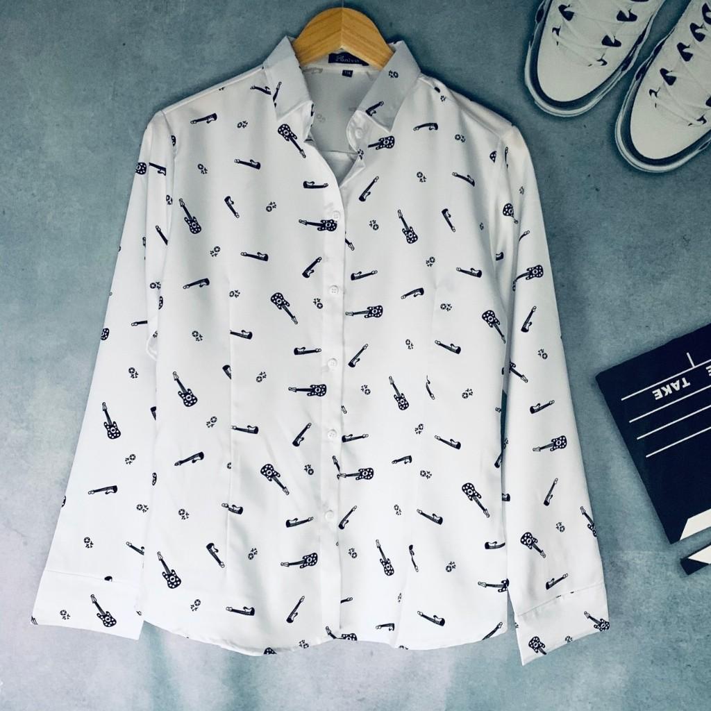 ✨Áo Sơ Mi Nữ Dài Tay Họa Tiết Cây Đàn Mẫu FR03 Thời Trang Nữ PONIVA Thiết Kế Trẻ Trung, Thanh Lịch
