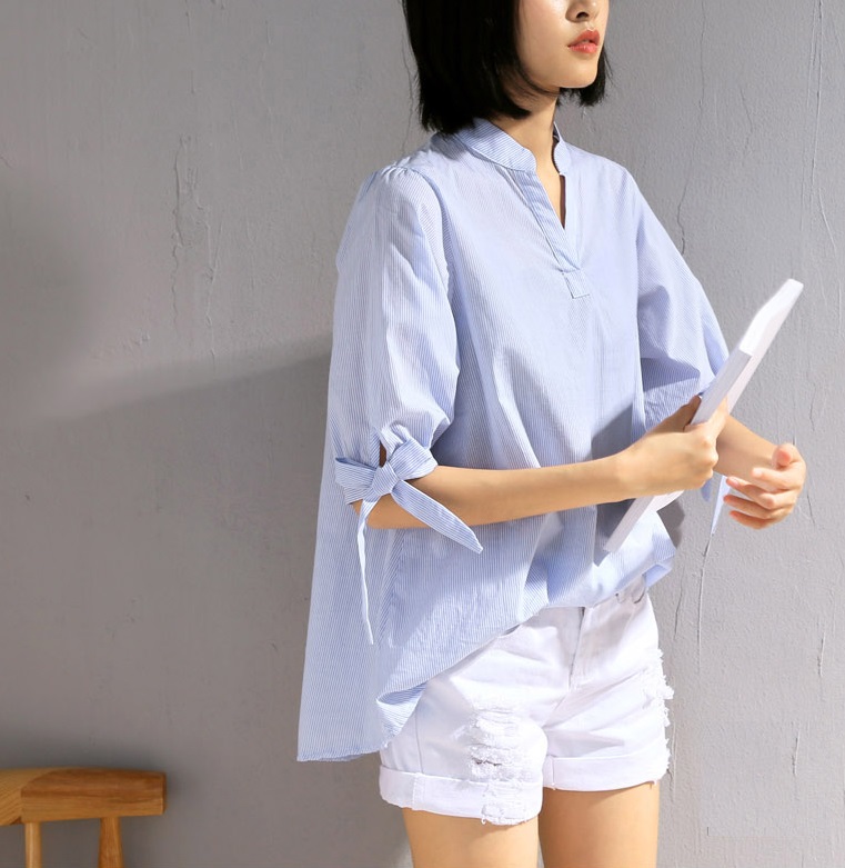 --------------- CHI TIẾT SẢN PHẨM ✿ Sản phẩm : Áo sơ mi mùa hè kiểu dáng thanh lịch, trẻ trung Asley Miều Est.2013 ✿ Chất liệu : Cotton  ✿ Màu sắc : SỌC XANH ✿