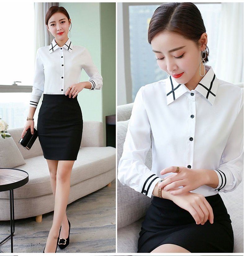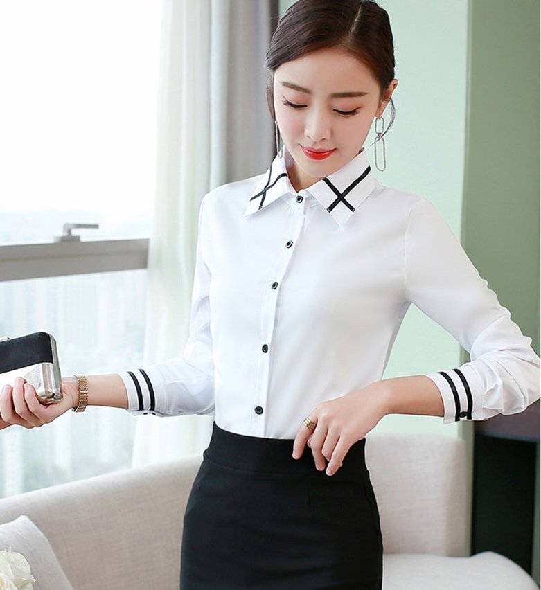 ✨Áo sơ mi nữ trắng, áo sơ mi nữ công sở kiểu dáng basic, phối hạo tiết đen ở cổ và tay làm điểm nhấn HB147