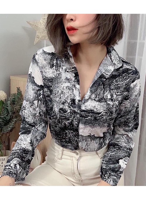 Áo Sơ Mi Tay Dài Họa Tiết Màu Loang Phong Cách Hàn Quốc Cho Nữ HB81Áo Sơ Mi Tay Dài Họa Tiết Màu Loang Phong Cách Hàn Quốc Cho Nữ HB81