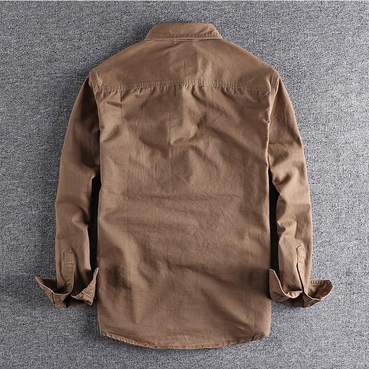 Áo sơmi lính tay dài phong cách off road dã ngoại Được làm bằng chất liệu kaki mềm mặc rất bụi và đúng phom áo Chất liệu vải dày vừa phải nên có thể mặc