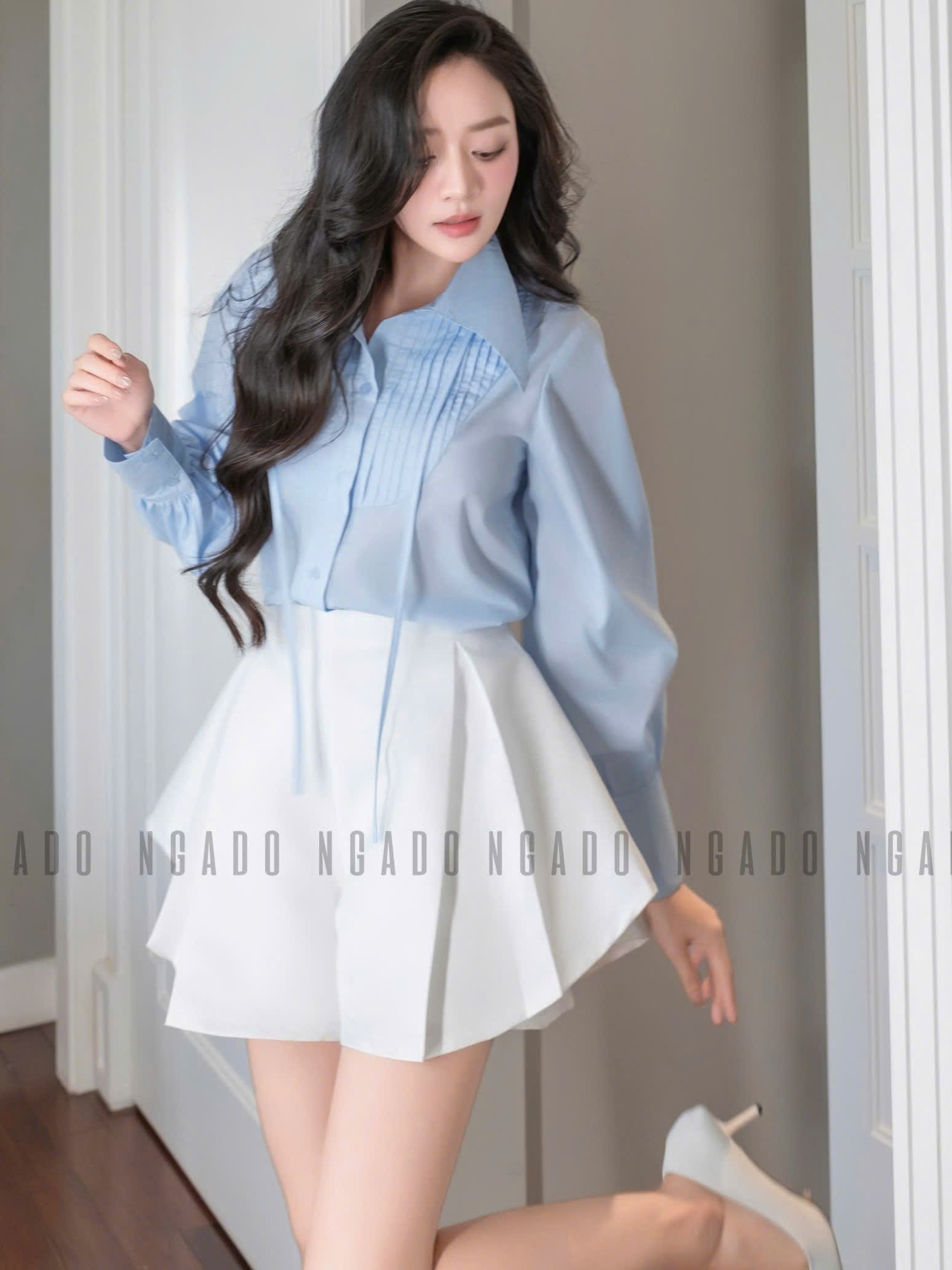 ✨Áo sơ mi xanh nhạt NGADO , áo kiểu nữ , áo sơ mi