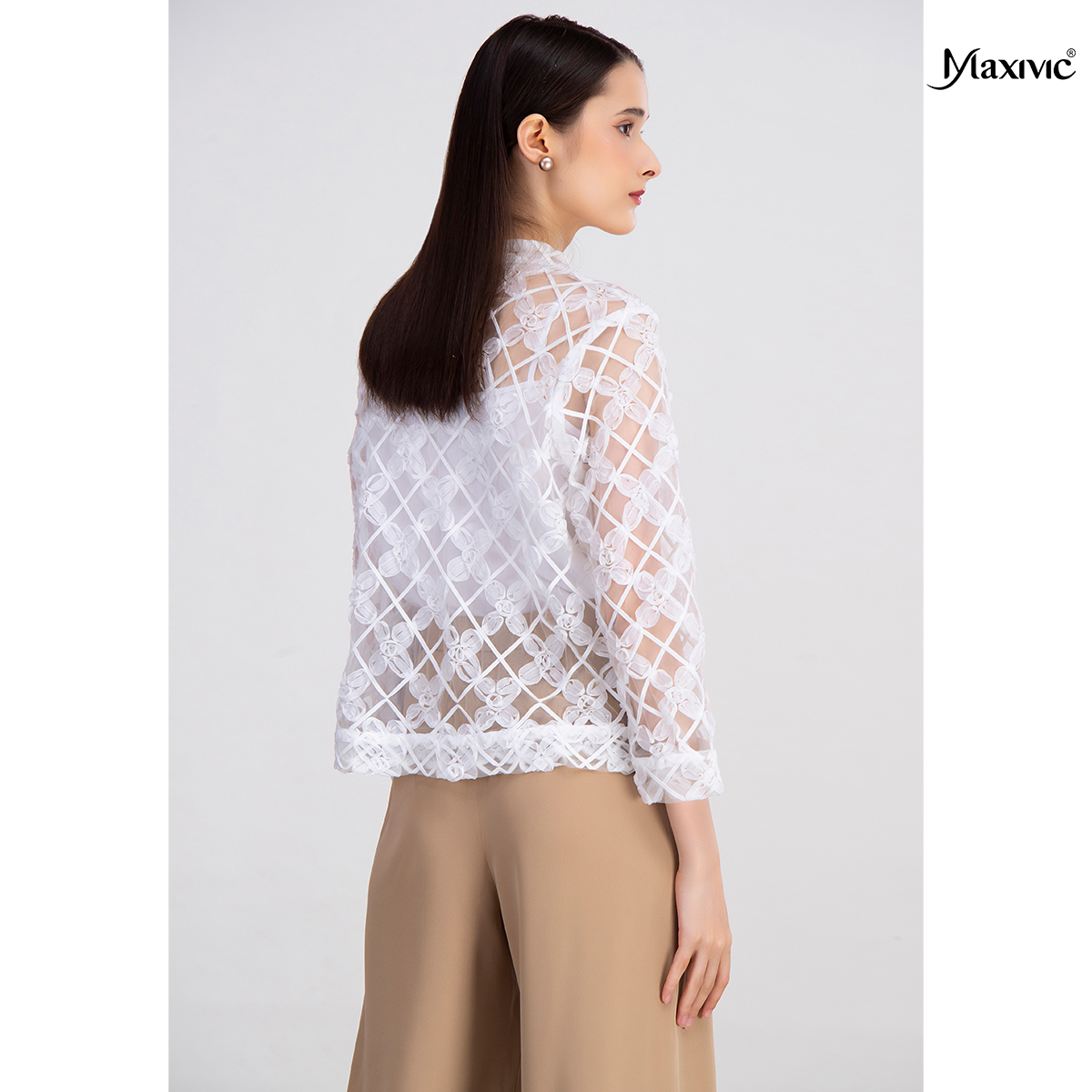 ✨Áo sơmi ren organza cổ trụ Maxivic M032311