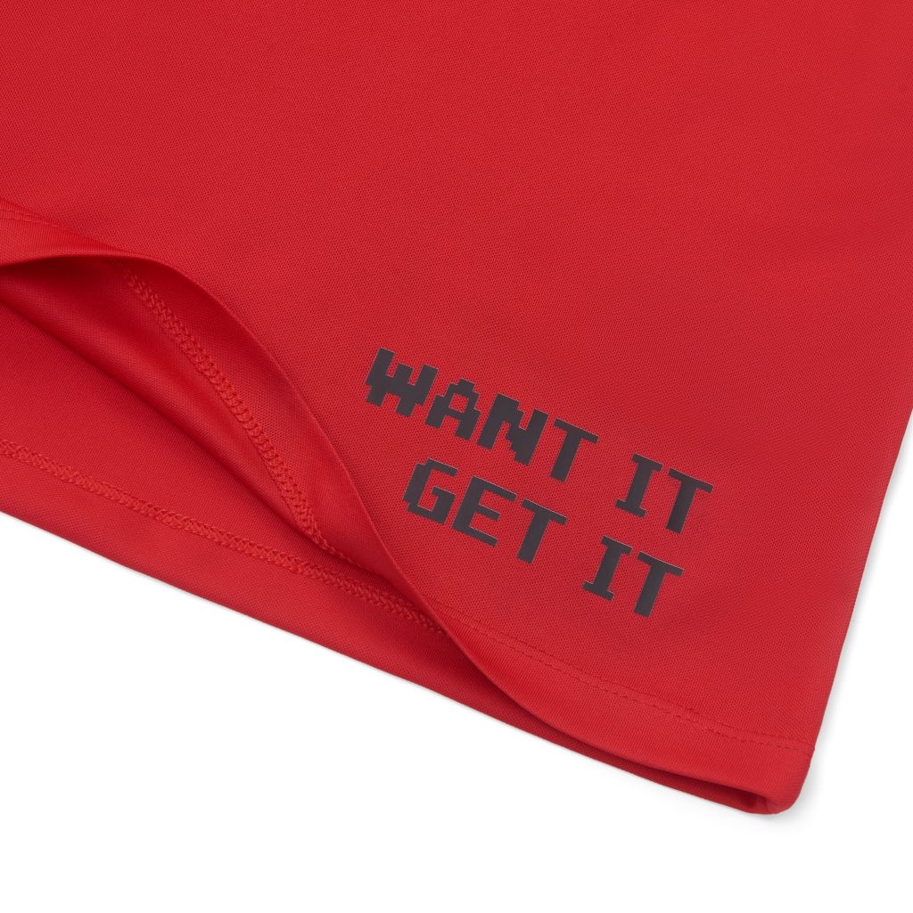 - Bên tay áo là brandname được cách điệu theo xu hướng 8 bit với tone vàng tràn đầy năng lượng và tươi trẻ. Thân sau áo là slogan Want it get it đặc biệt cùng font 8 bit được in bên hông, đem lại sự phá cách đầy độc đáo cho sản phẩm.