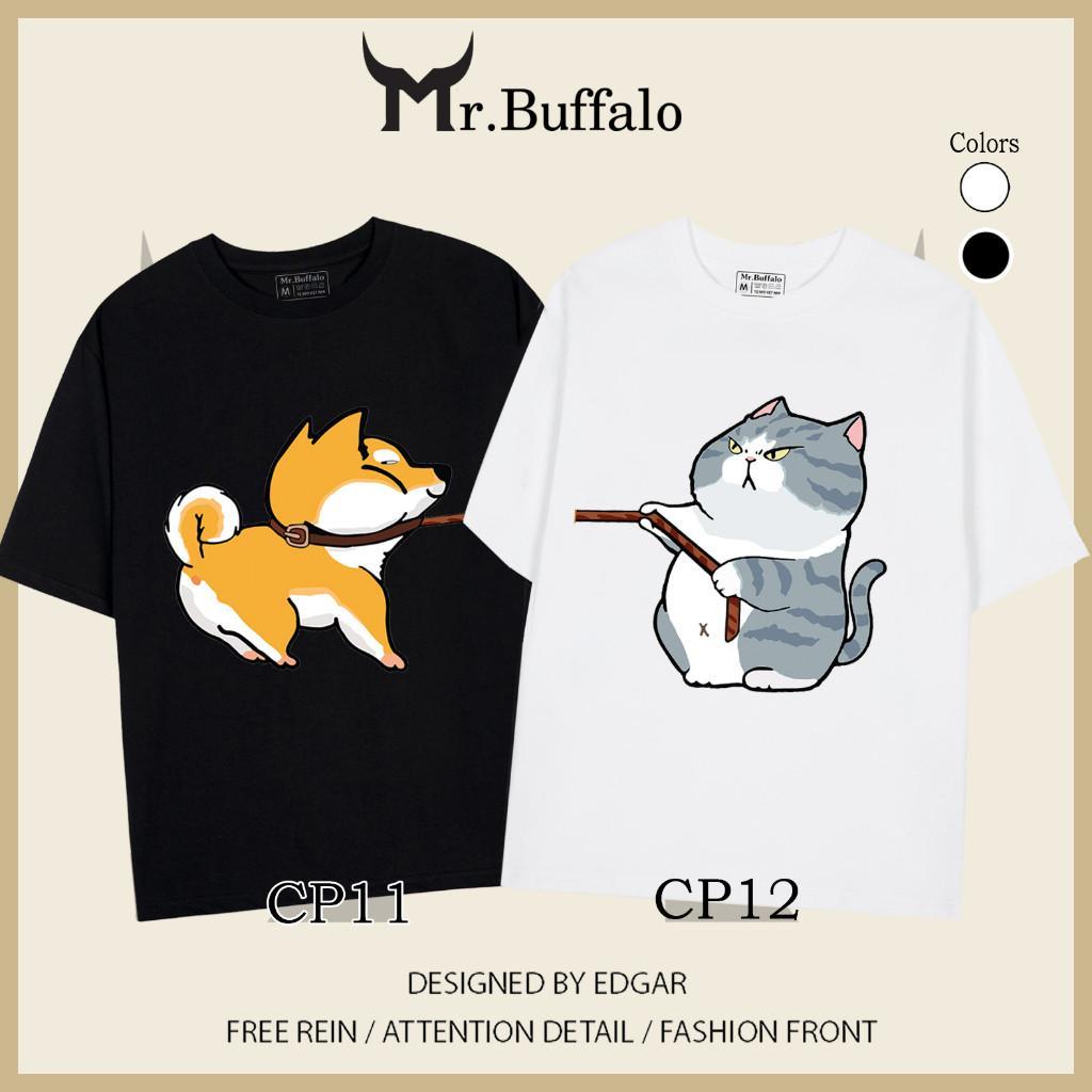 ✨Áo Thun Đôi, Cặp Mr.Buffalo mèo kéo chó Tshirt Cotton 100% có bigsize Unisex Form Oversize Local Brand CP11CP12