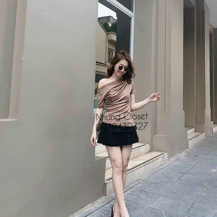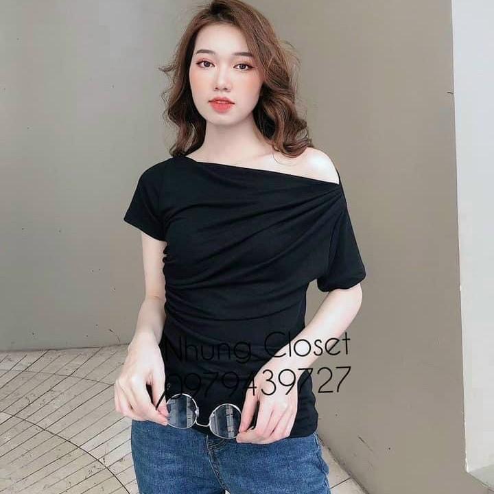 ✨ÁO THUN LỆCH VAI RÚM EO_ÁO KIỂU HỞ VAI NỮ