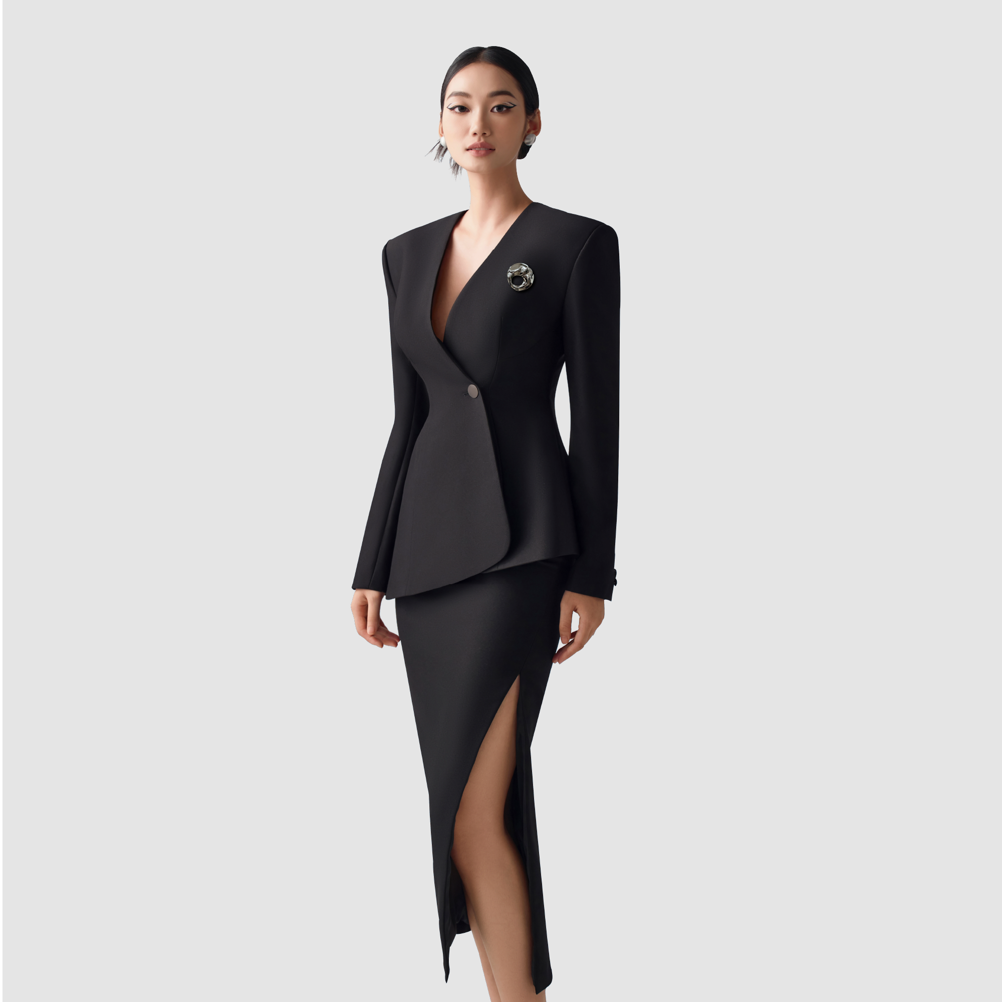 1. Mô tả INFINITY / KELSEY KELSEY SET - thiết kế "chiều lòng" phái đẹp với sự kết hợp đến từ áo vest tay dài, lệch vạt cùng chân váy cách điệu đã mang đến