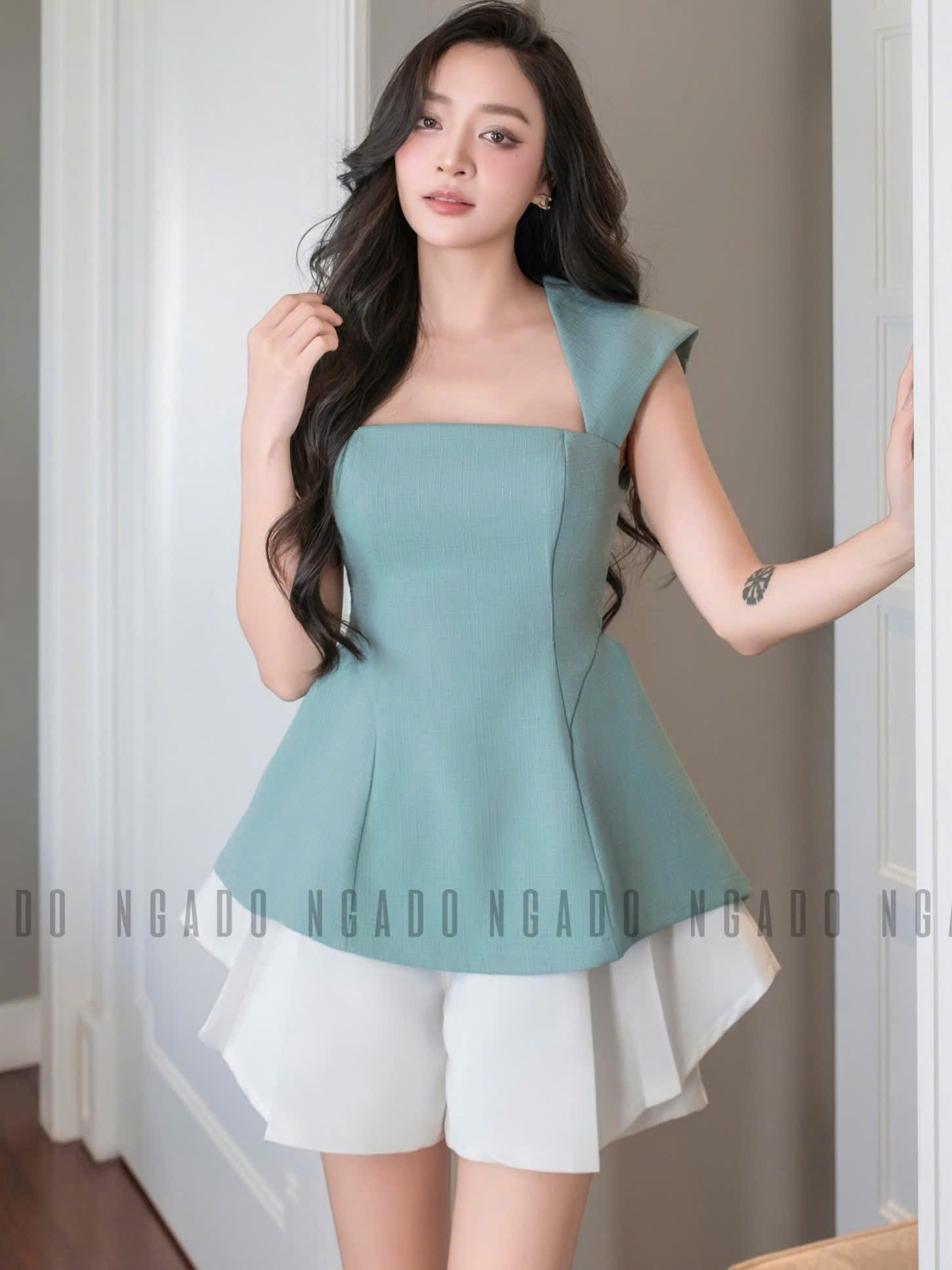 ✨Áo xanh mint chiết eo NGADO , áo kiểu , áo chiết eo