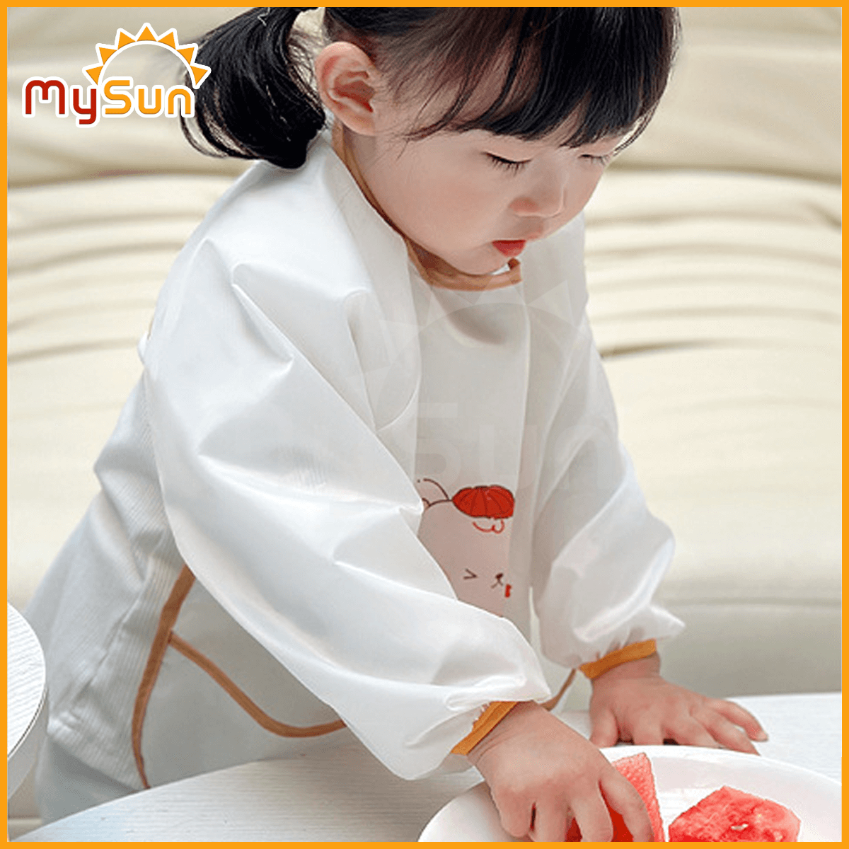 Làm sao để giữ được sự sạch sẽ và thoải mái khi con bắt đầu ăn dặm là vấn đề chung của hầu hết mọi gia đình. Trong giai đoạn này, bé thường chưa thể tự chủ với đồ ăn và dễ làm vương vãi ra sàn nhà hoặc rơi rớt lên quần áo, cơ thể. MySun giới thiệu đến ba mẹ áo yếm ăn dặm nhựa BLW có dài tay chống thấm cho bé 1 2 3 4 tuổi MySun. Món đồ sẽ là "cứu cánh" giúp việc cho bé ăn không còn là một chiến trường ác liệt. Sản phẩm có ưu điểm gì nổi bật và khác biết, hãy cùng MySun tìm hiểu kỹ hơn nhé.