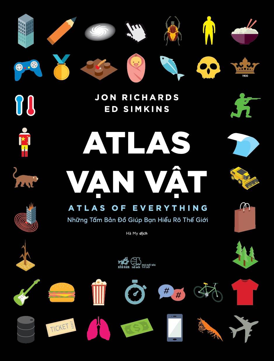 Cuốn sách này bao gồm 50 tấm bản đồ, biểu diễn các số liệu và thông tin độc đáo về hầu như mọi thứ bạn muốn biết về thế giới của chúng ta. Từ những người đoạt giải Nobel đến những loài đang gặp nguy hiểm, những ngọn núi lửa đang hoạt động đến những nền văn minh cổ xưa, nguồn gốc loài người, thế giới tự nhiên, điện ảnh, thể những tấm bản đồ hình họa trong cuốn Atlas vạn vật này mang tới nhiều thông tin lý thú một cách thật hoành tráng và dễ hình dung!