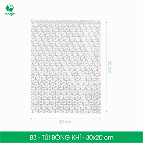 ĐẶC ĐIỂM SẢN PHẨM Túi khí đóng gói là mặt hàng đóng gói nhẹ, chắc chắn - mang lại sự đảm bảo về lớp đệm đáng tin cậy và giảm chi phí vận chuyển Cố định và bảo vệ đồ dễ vỡ khỏi bị sốc, rung và KHÔNG TRUYỀN LỰC trong túi bong bóng Tiện lợi, sử dụng đơn giản - dạng túi hơi, tiện dụng, chỉ cần bỏ sản phẩm vào túi và quấn lại mà không cần phải cắt giúp tiết kiệm thời gian Bền dẻo, chống thấm nước - cuộn bóng khí được làm bằng nhựa nguyên sinh với độ dẻo tuyệt vời, không dễ bị rách, thủng và bảo vệ vật khô ráo từ môi trường ướt bên ngoài Đa dạng kích thước, phù hợp nhu cầu đóng gói cụ thể ️ Lưu ý: Sản phẩm dễ cháy, tránh lửa CÔNG DỤNG Bảo vệ các vật dụng, đồ vật đựng chất lỏng dễ vỡ: • Bát đĩa, đồ sưu tầm, thủy tinh • Mỹ phẩm, nước hoa, son • Thiết bị điện tử và các thiết bị nhỏ QUY CÁCH KỸ THUẬT Chất liệu: Nhựa nguyên sinh Màu sắc: Trong suốt Hình dáng thiết kế: Túi 1 đầu hở Mã sản phẩm - Kích thước (phủ bì): • B1 - 15x10 cm • B2 - 20x15 cm • B3 - 30x20 cm • B3A - 25x25 cm • B3B - 40x30 cm