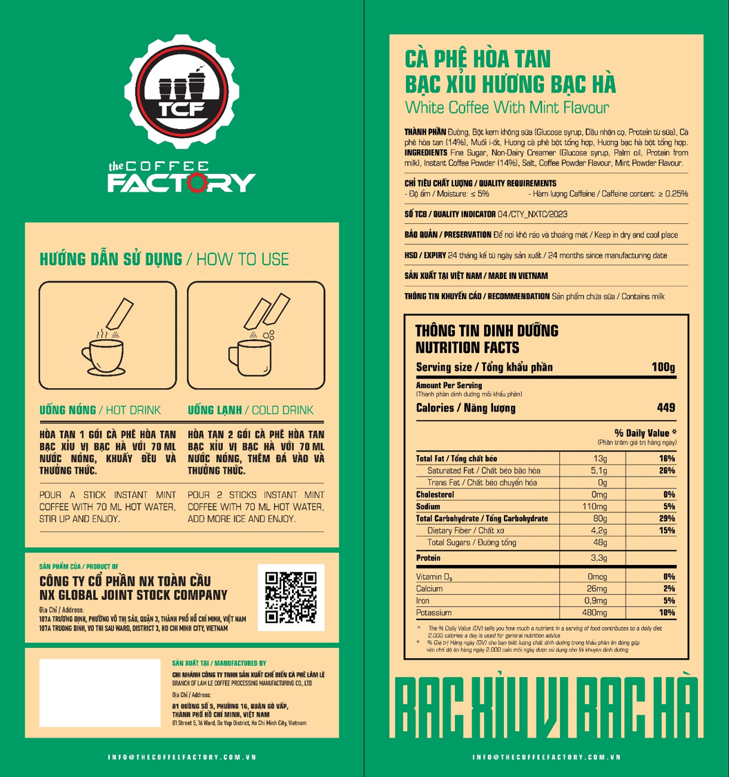 Tên sản phẩm: Bạc xỉu vị bạc hà hòa tan The Coffee Factory (Hộp 15 gói x 16g)