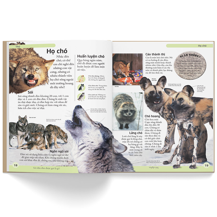 Với các hình minh họa trực quan sinh động, bắt mắt, cuốn sách cung cấp một lượng kiến thức phong phú, súc tích, dễ hiểu, và những câu hỏi vui, mẩu thông tin thú vị về động vật. Em sẽ được tìm hiểu về các nhóm động vật chính, cách chúng kiếm ăn, tự vệ, kết đôi hay sinh sản. Ngoài ra, em còn được biết về một số loại động vật kì lạ, ví dụ như những loài cá dưới biển sâu.