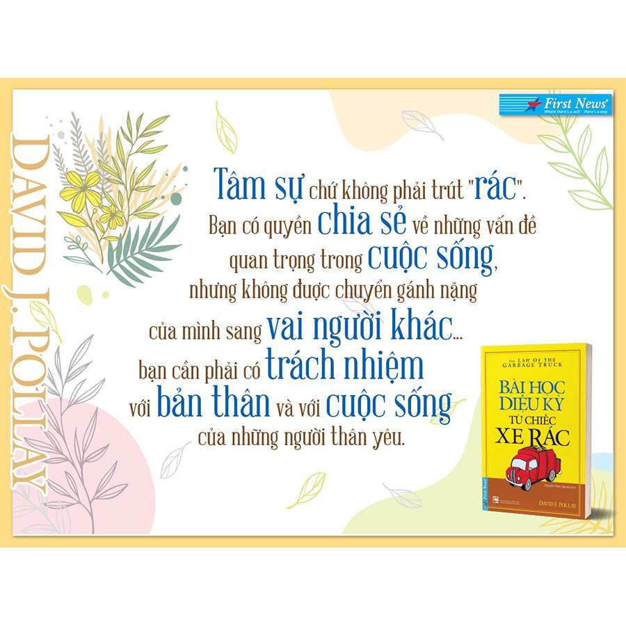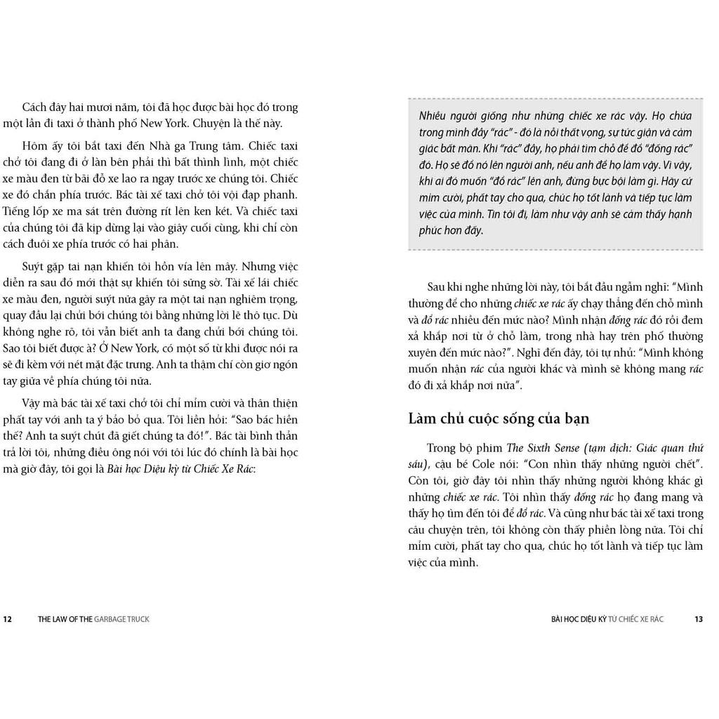 Câu nói trên của một người lái taxi đã khiến David y nảy sinh ý tưởng để viết nên “Bài học diệu kỳ từ chiếc xe rác”. Thông qua cuốn sách này, bạn sẽ học được cách vô hiệu hóa “những chiếc xe rác”, không bị những nguyên nhân vụn vặt cản trở con đường hoàn thiện bản thân, bỏ qua những điều tiêu cực nằm ngoài tầm kiểm soát và trân trọng những gì tốt đẹp đang hiện hữu trước mắt.