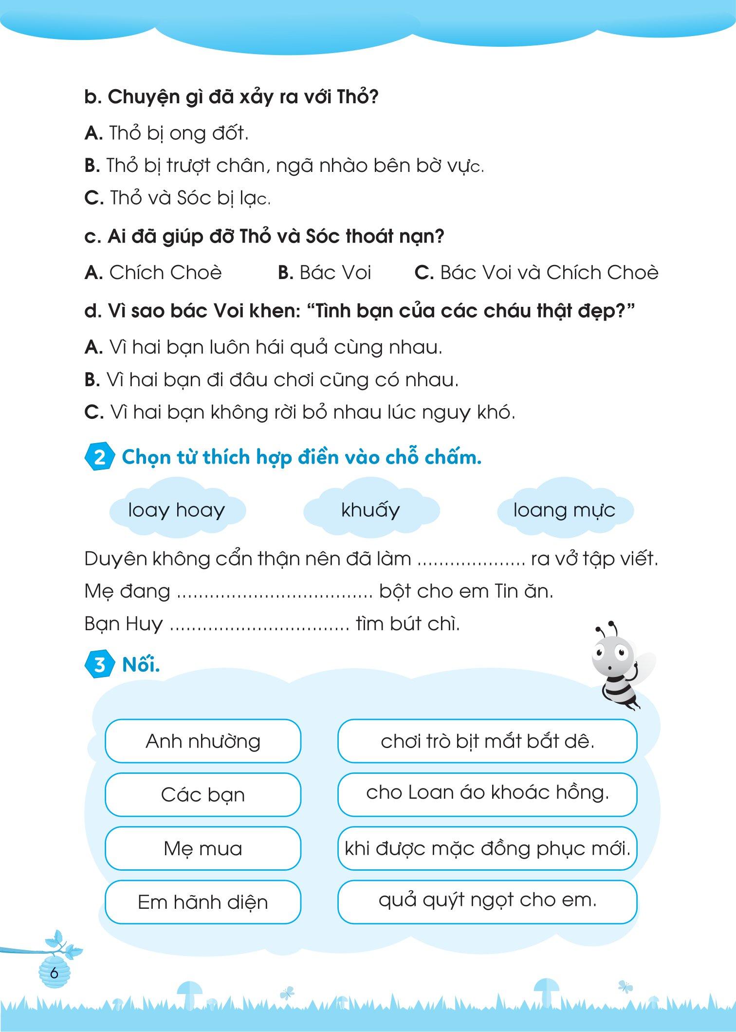 - Bài tập cơ bản Các bài tập trong phần này được thiết kế sinh động, đầy cảm hứng với rất nhiều các hoạt động nối, tô màu, gạch chân, giúp khơi gợi hứng thú học và làm bài tập của các em, đồng thời giúp các em củng cố và nắm chắc các kiến thức đã học.