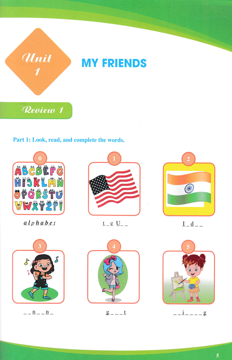 Phần 1: Unit Review and Tests (Các đề ôn tập và bài kiểm tra). Các đề ôn tập trong phần này sẽ được trình bày dưới dạng các bài luyện tập theo từng unit (Unit Review). Sau mỗi 2 hoặc 4 unit sẽ có một bài kiểm tra (Test) tương ứng với từng học kì để học sinh có thể tự kiểm tra .