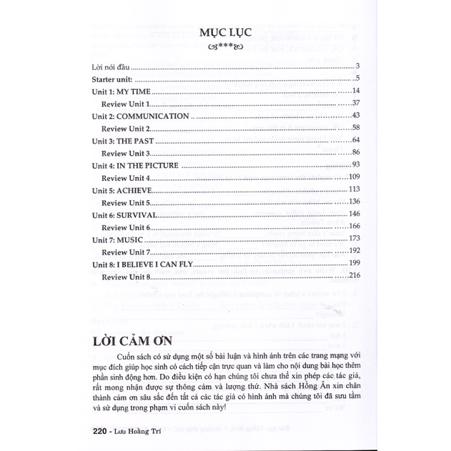 Cuốn sách gồm 8 đơn vị bài học và bài ôn tập.