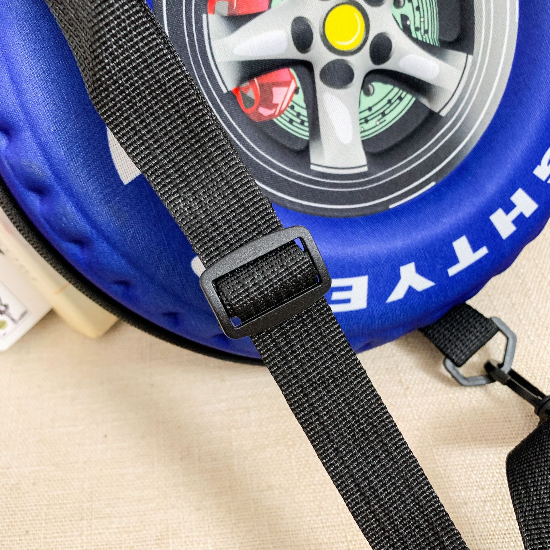 Thiết kế 3D đẹp mắt, dáng balo 3D hộp hình lốp ô tô mới lạ cùng với họa tiết dễ thương tạo sự thích thú cho các bé - Dây đeo tùy chỉnh: ba mẹ