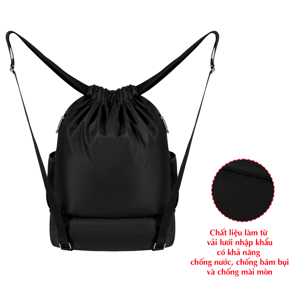 Chất liệu : Balo dây rút thể thao được sử dụng chất liệu dù lạnh chống thấm nước hiệu quả cao, chống bám bụi, chống mài mòn